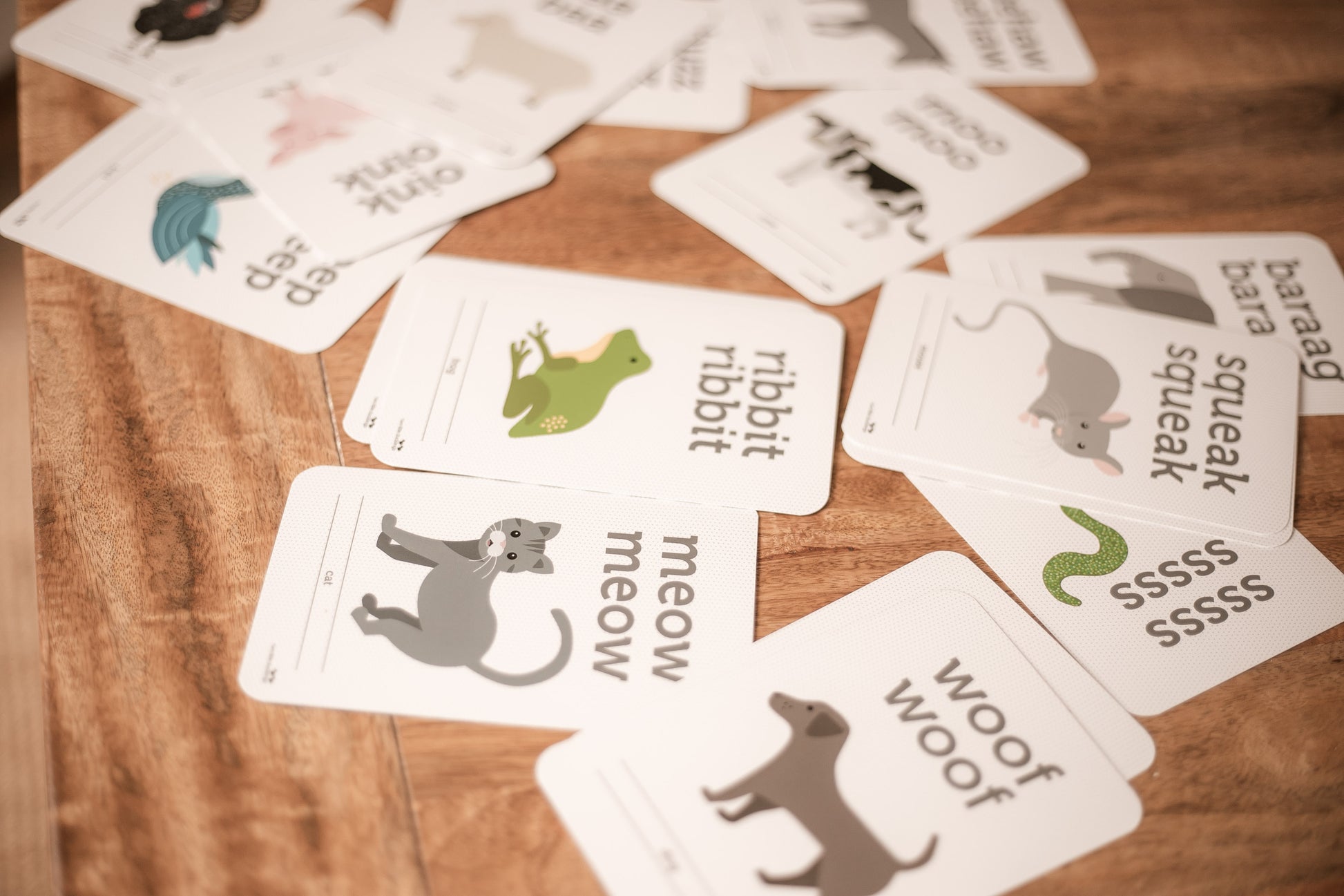 Make learning the sounds animals make fun with this set of brightly-coloured illustrated flash cards. The cards feature a range of different animals and the sounds they make. Each card is laminated and features rounded corners for long life and durability. Proudly Australian made and printed on environmentally friendly paper. Cards are 10cm x 15cm in size.