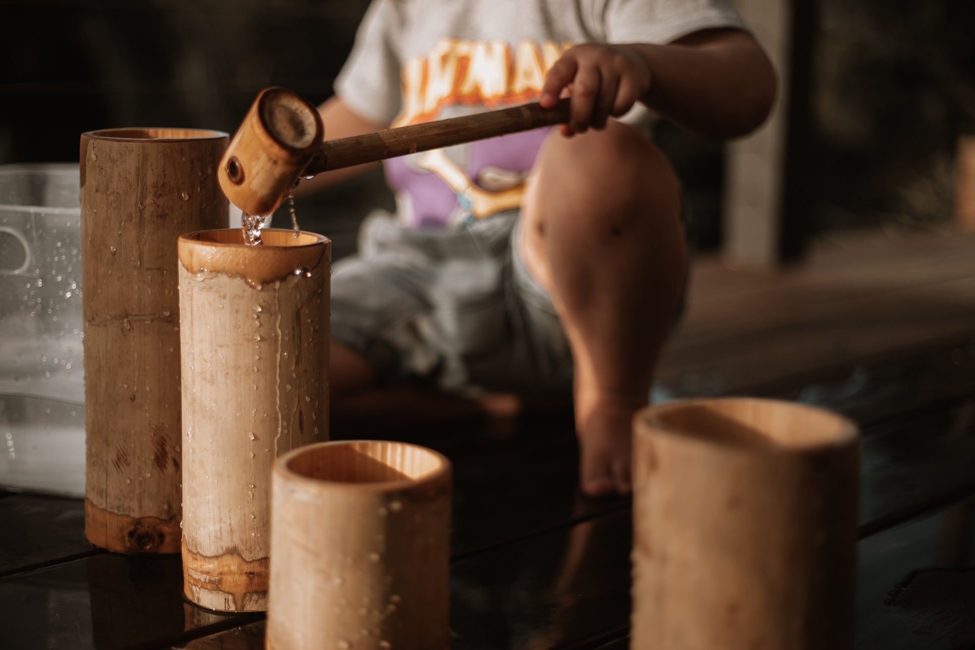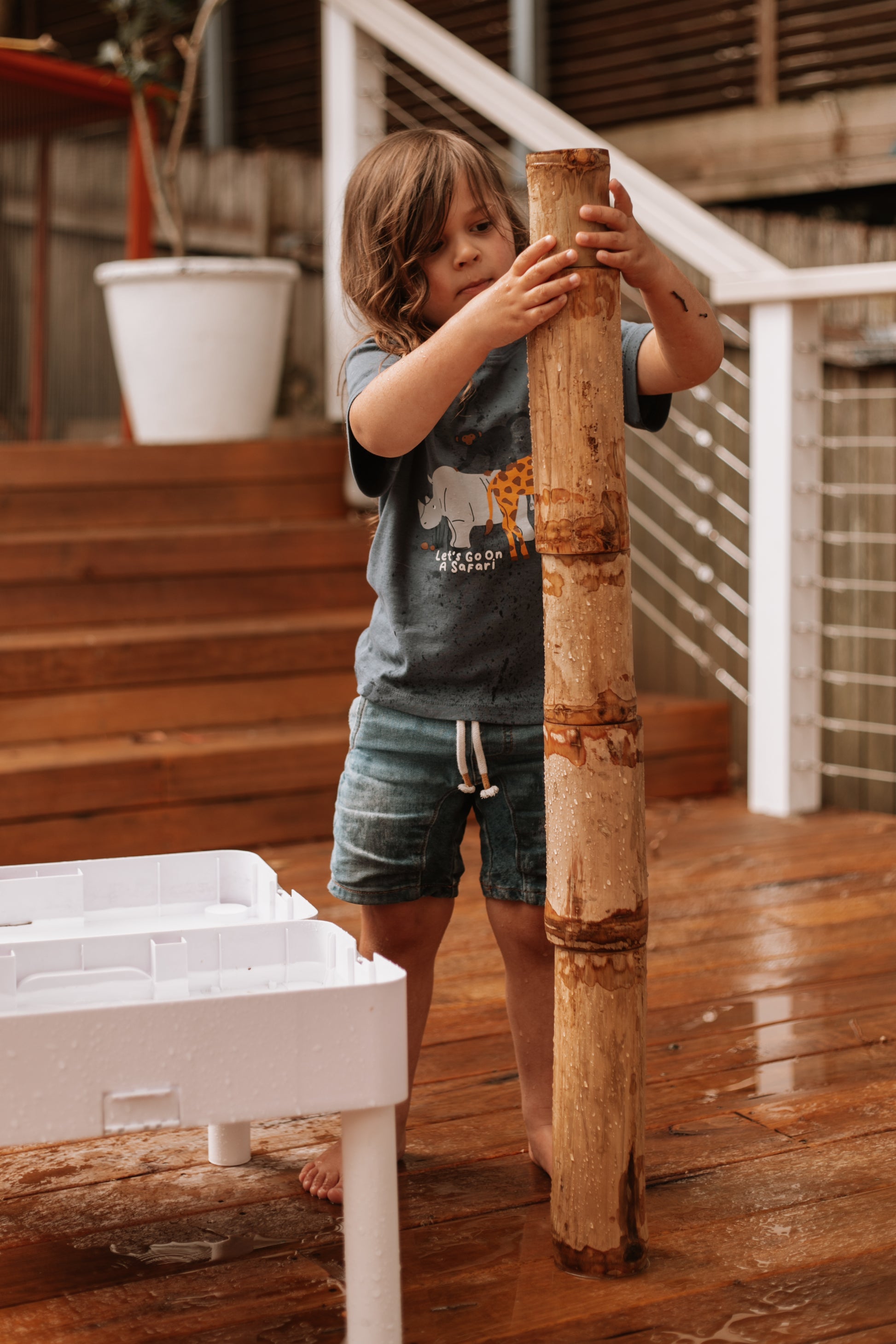This bamboo measuring kit includes 5 bamboo tubes and a bamboo scoops. the tallest tube is 40 cm.