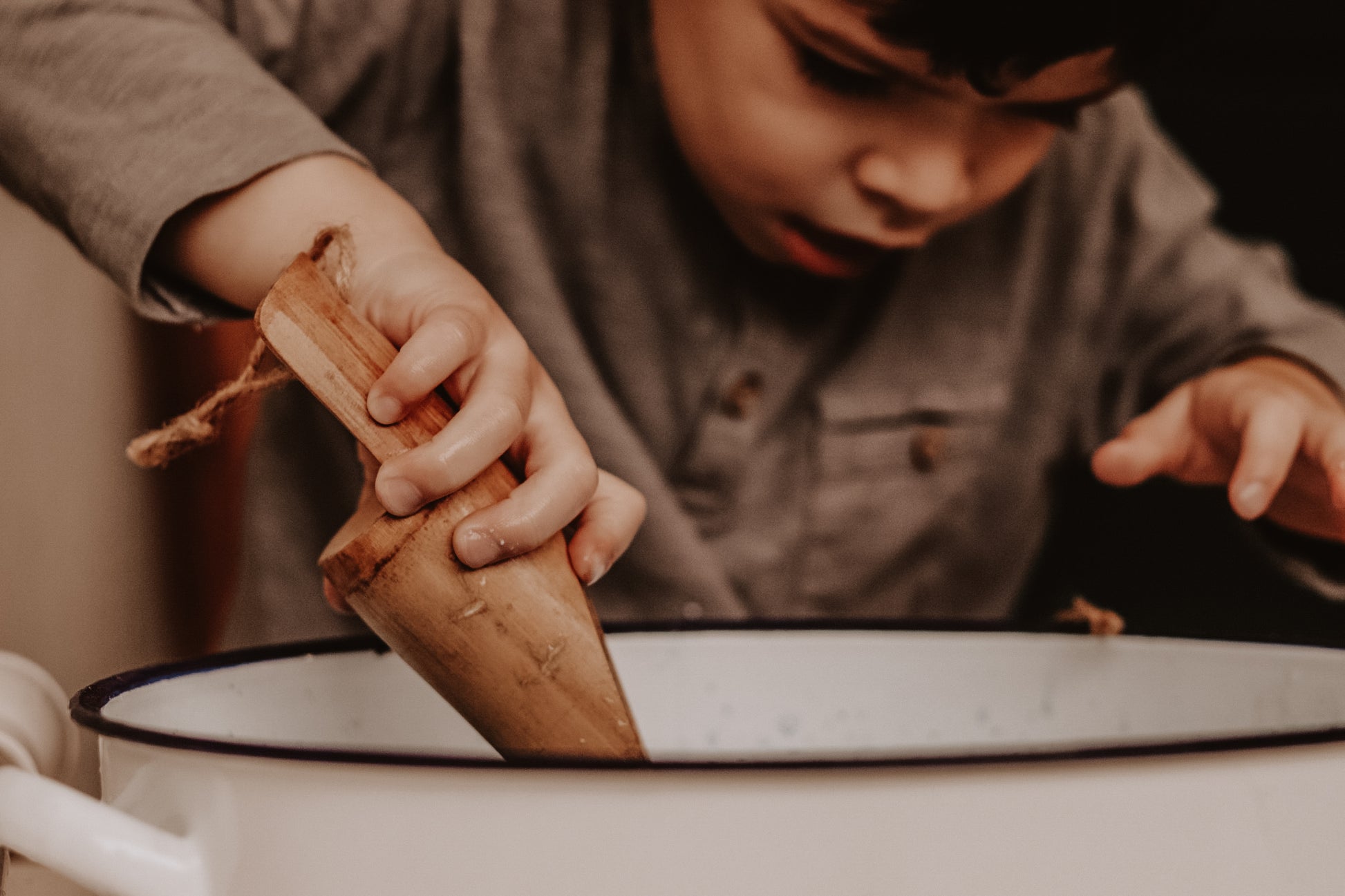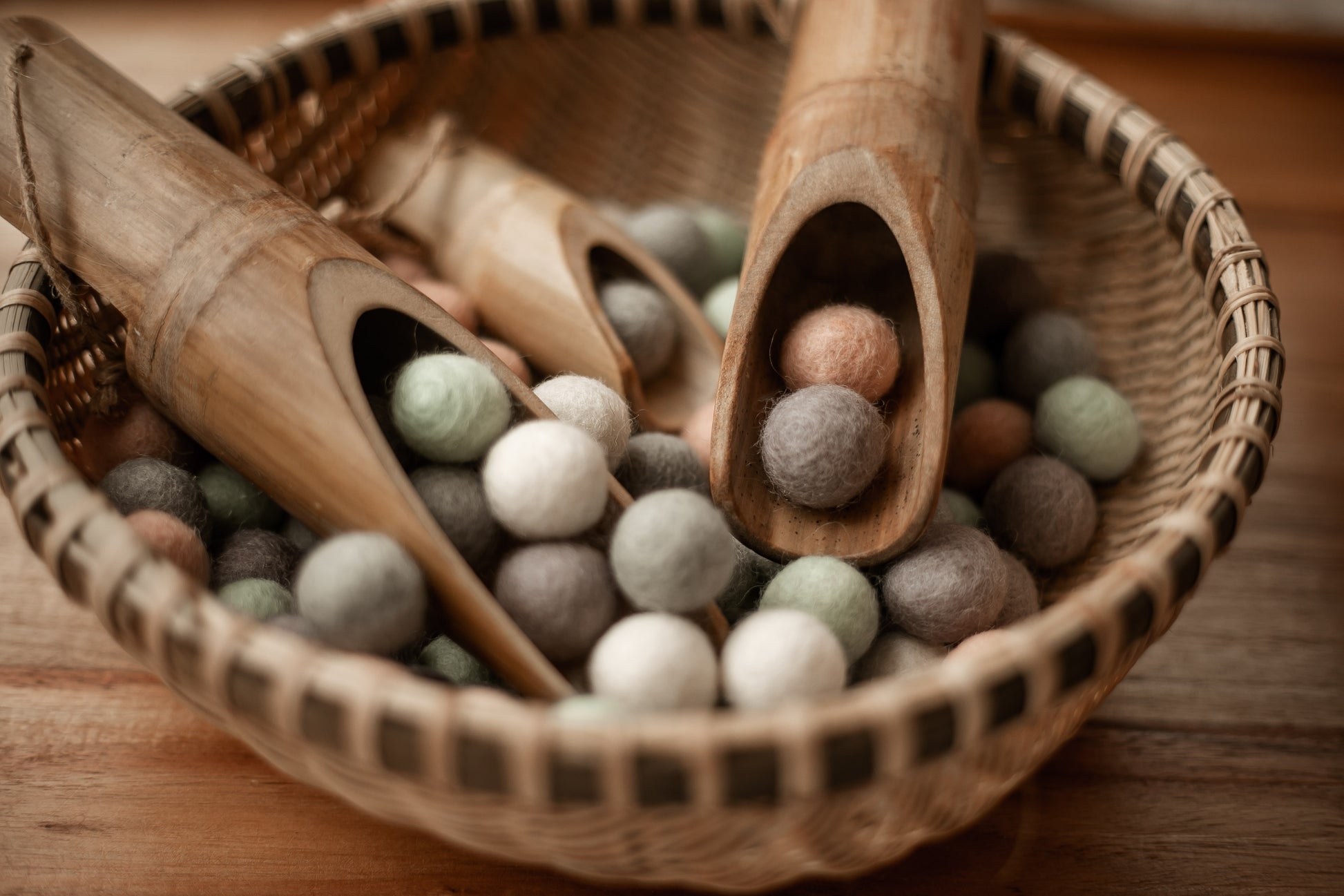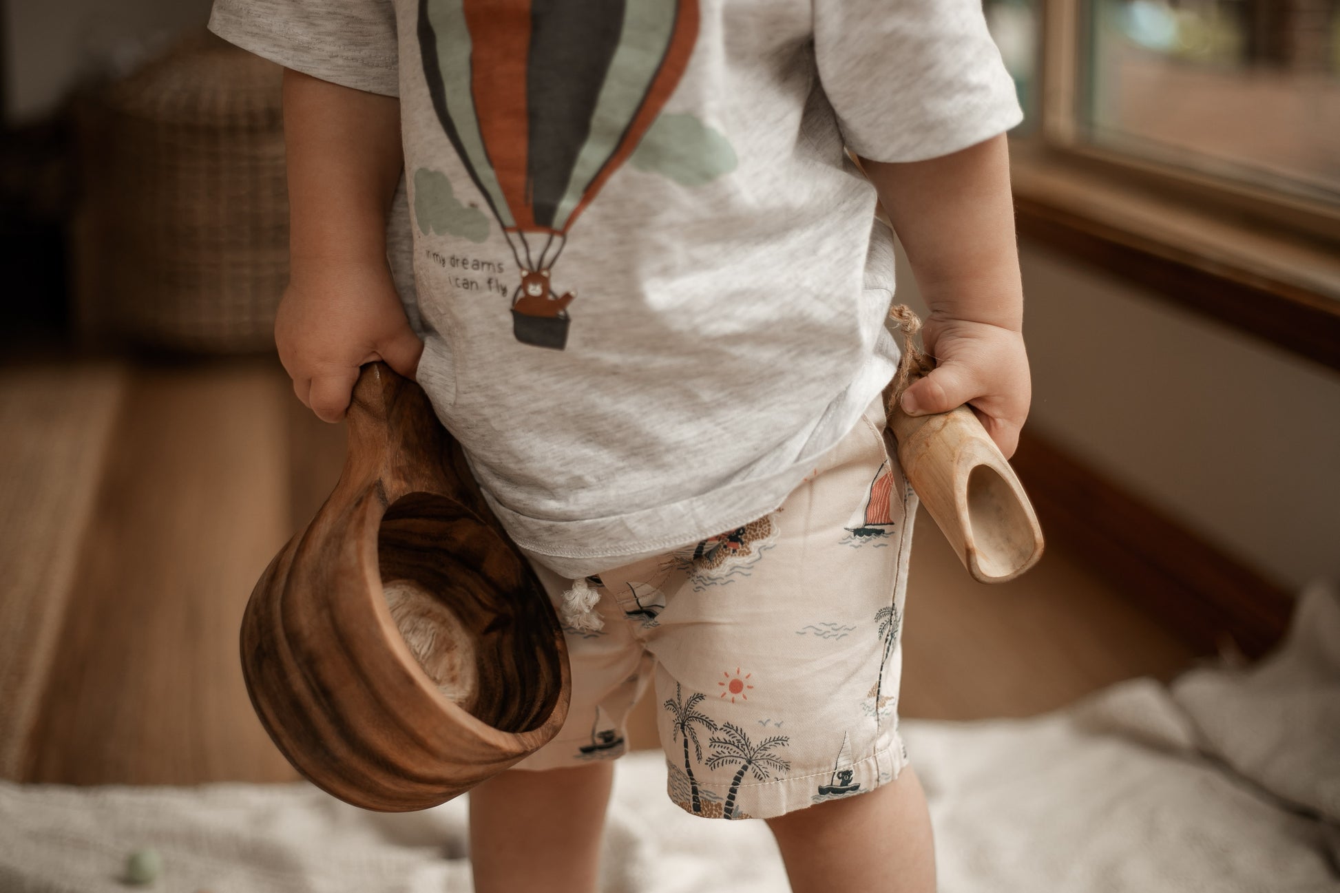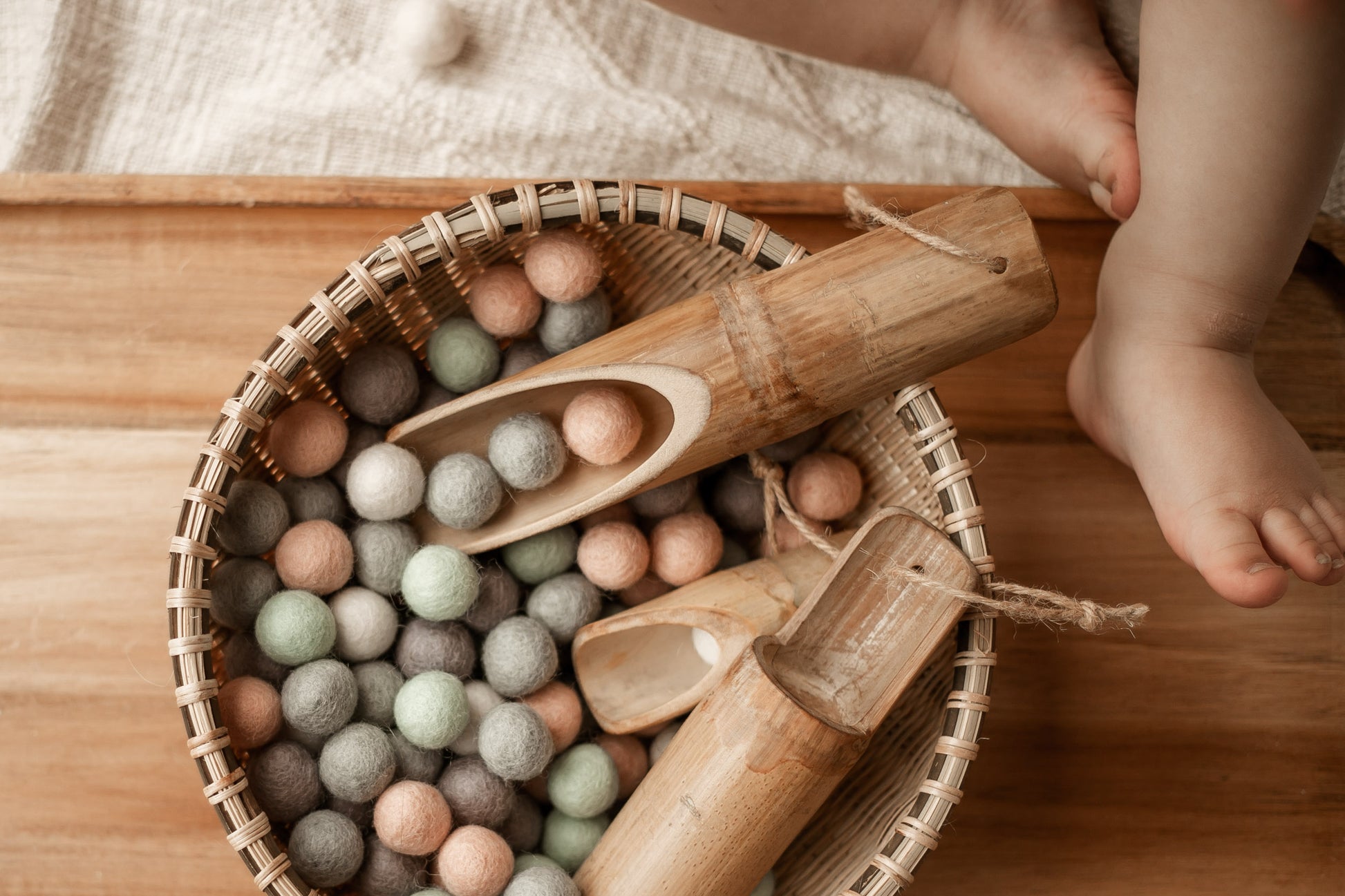 Set of 3 beautiful bamboo scoops that are the perfect size for your toddler to handle.