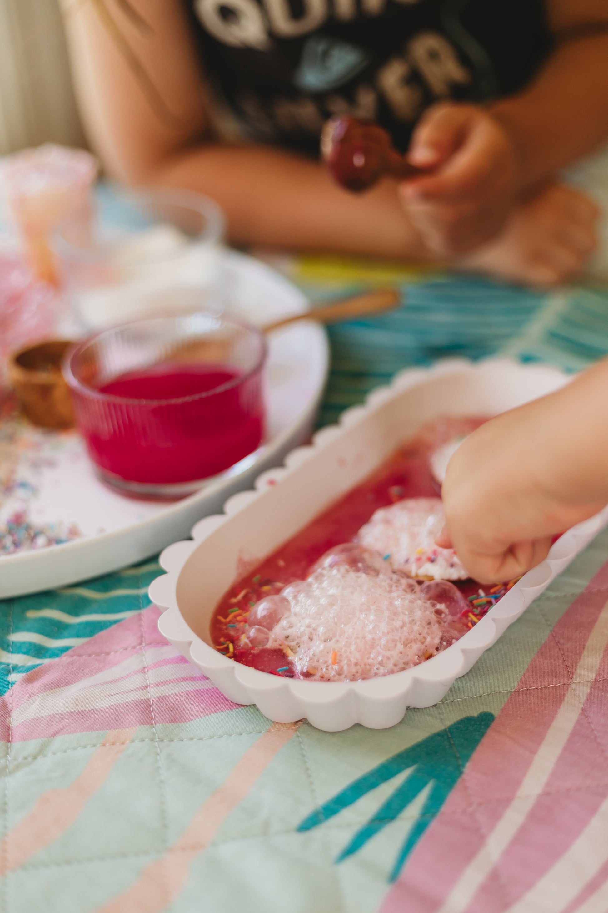There is something so magical about adding little bits and pieces to a bowl, gems, flowers and glitter, sprinkling in some magic fizzy dust, making a secret wish and adding that special ingredient... water.