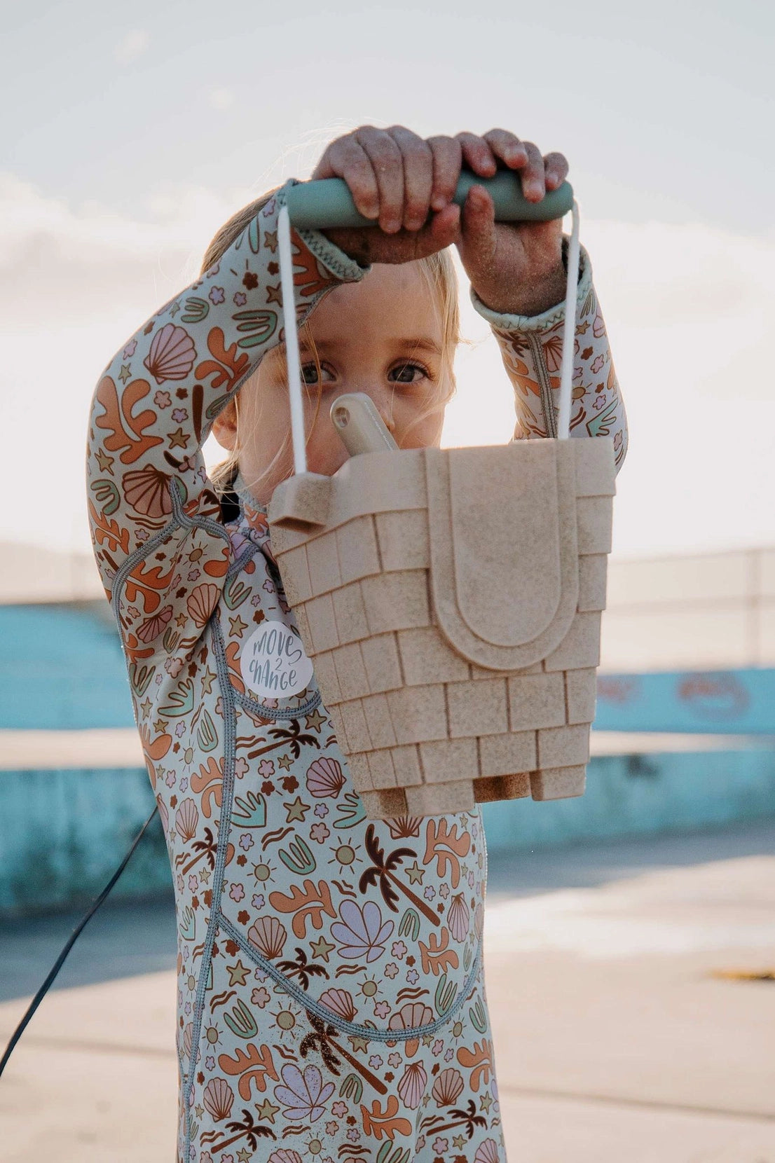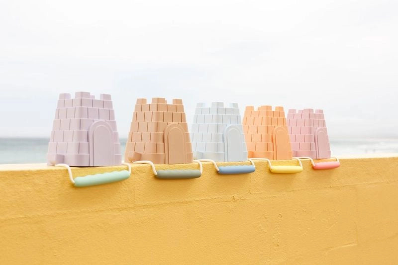 incorporating the squishiness of a silicone bucket in an exciting new castle shape - meet our clovelly castle buckets. made from the same quality silicone as our palm beach bucket, but in a square-based castle shape - exclusively designed by us, two mums here in Australia, alongside product engineers. our silicone beach toys are designed to be mixed and matched, squished and squashed for easy travelling. our castle buckets are available in our ten colours with a contrasting handle. suitable for ages 18 months +. parental supervision recommended. designed in woonona. made in china.