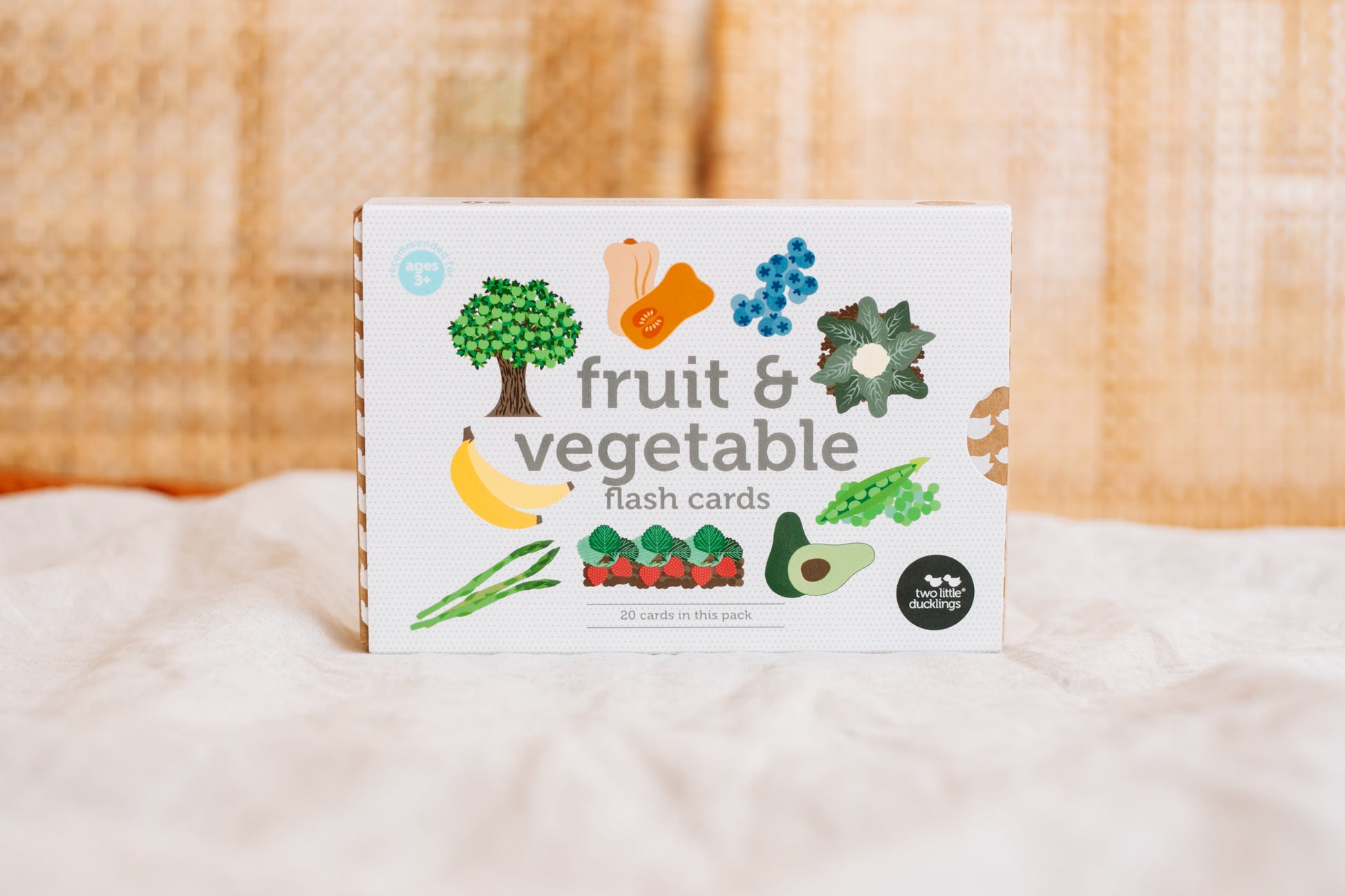 Make learning about fruits and vegetables fun with this set of brightly-coloured illustrated flash cards. The cards feature fruits and vegetables and how they grow. Each card is laminated and features rounded corners for long life and durability. Proudly Australian made and printed on environmentally friendly paper. Cards are 10cm x 15cm in size.