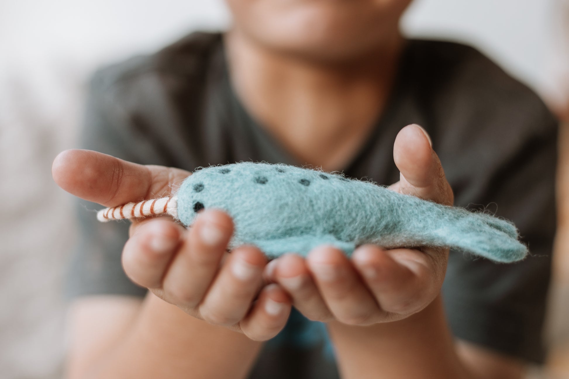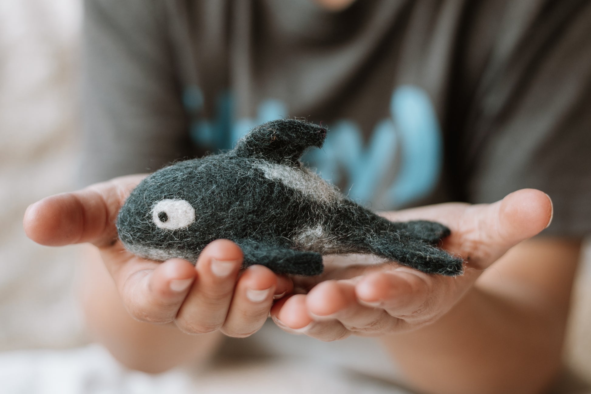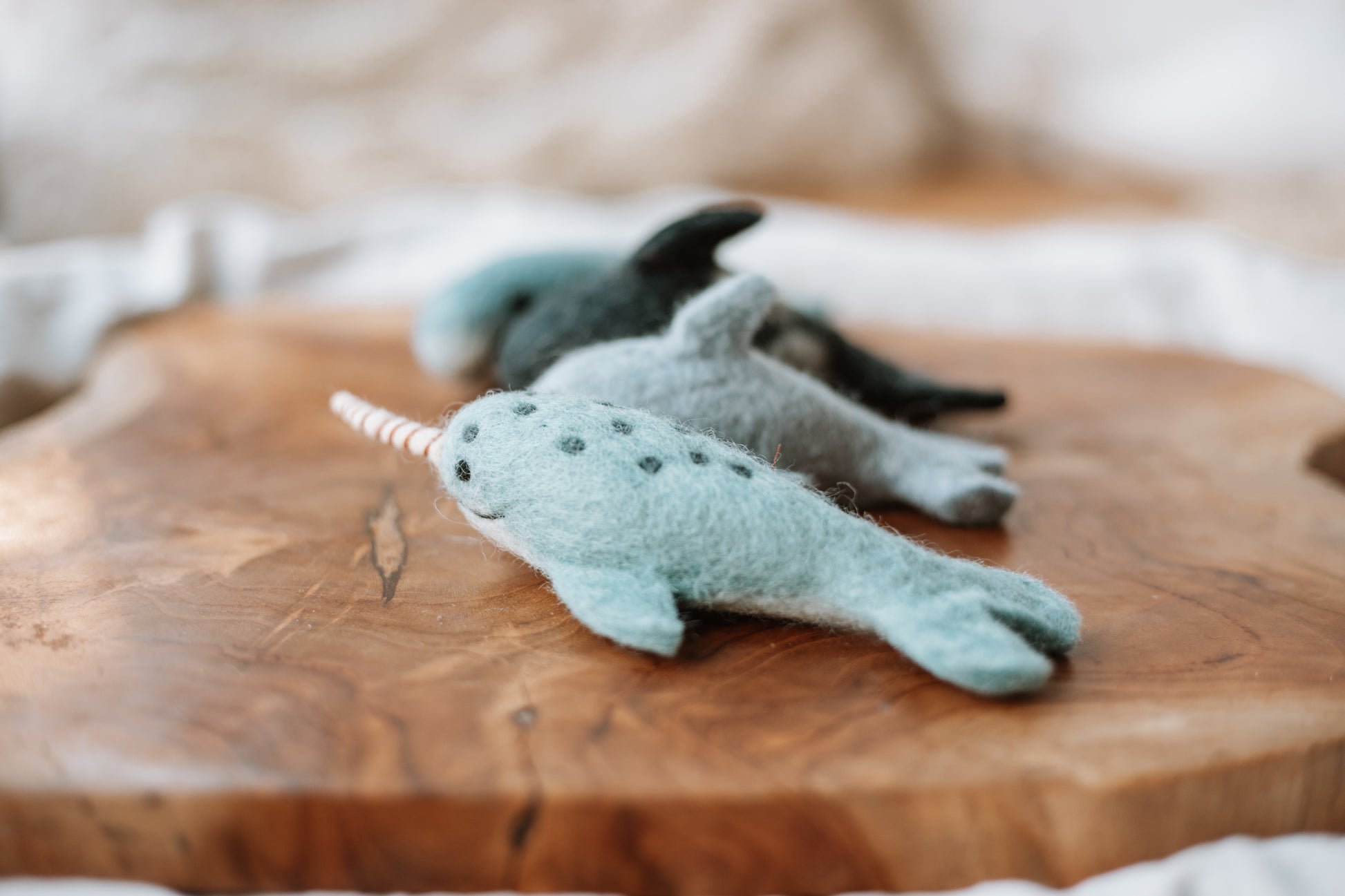 Inspired by the ocean and sea, this set of needle-felted toys consist of the four most gorgeous marine mammals - Narwhal, Orca (Killer Whale), Whale and Dolphin.