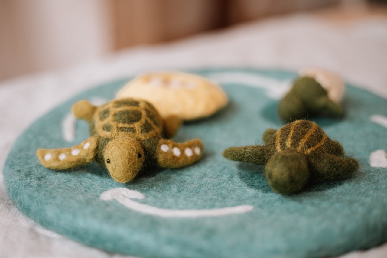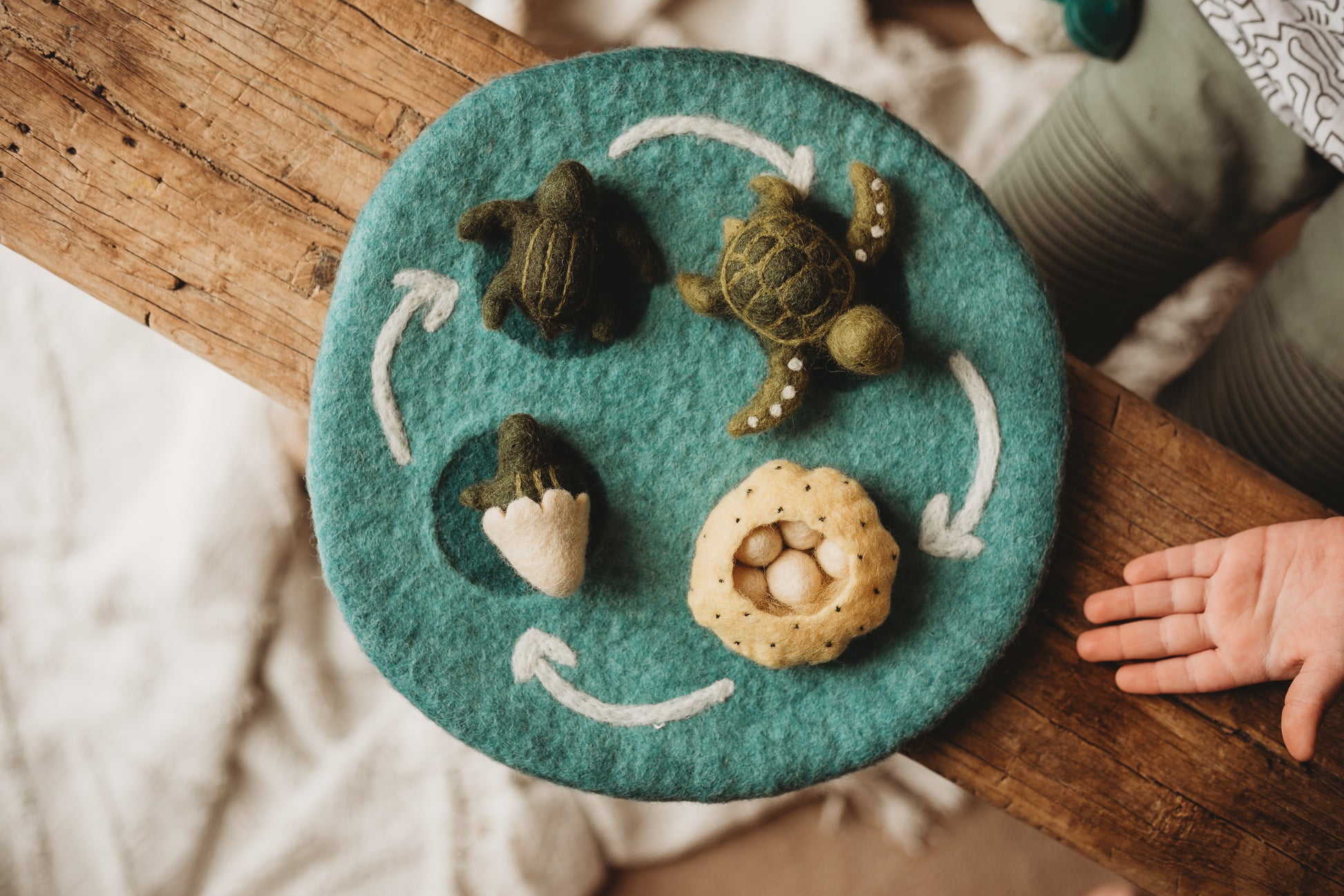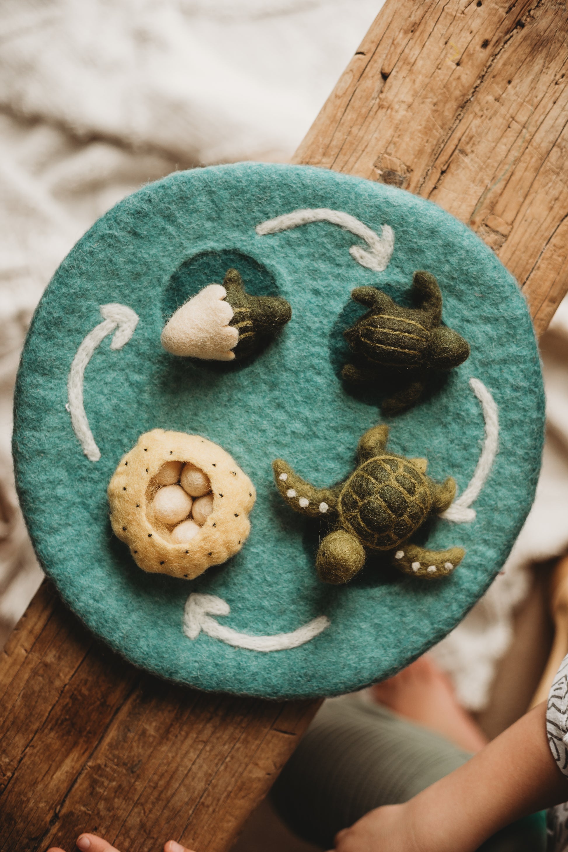 The green sea turtle is found in Australia's oceans and is one of the largest turtles in the world. This fascinating turtle life cycle toy has been needle-felted and great for small world play and silk play. This listing is for the felt lifecycle set only, the lifecycle tray playmat is sold separately.