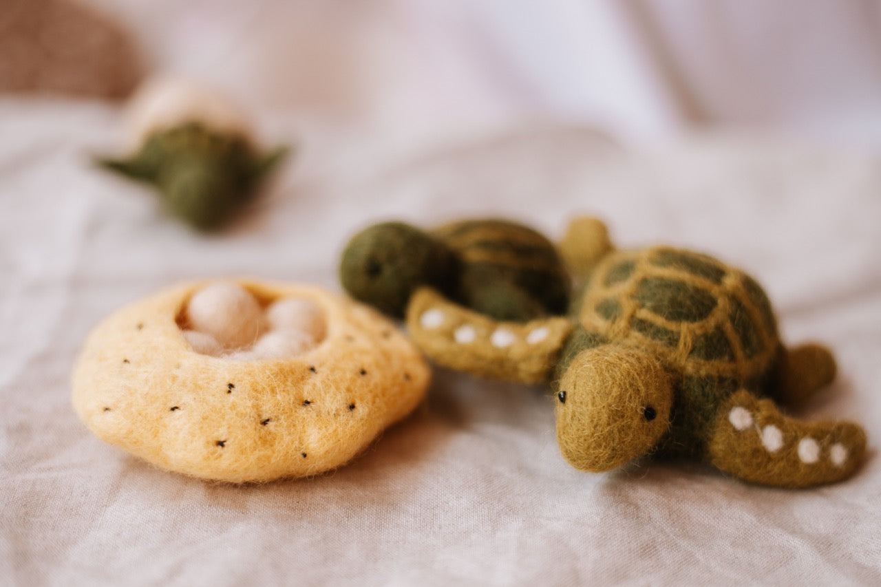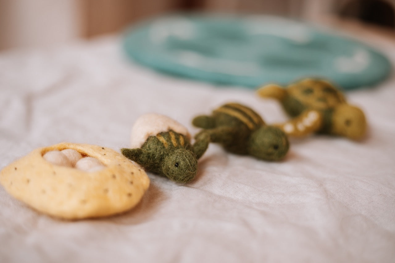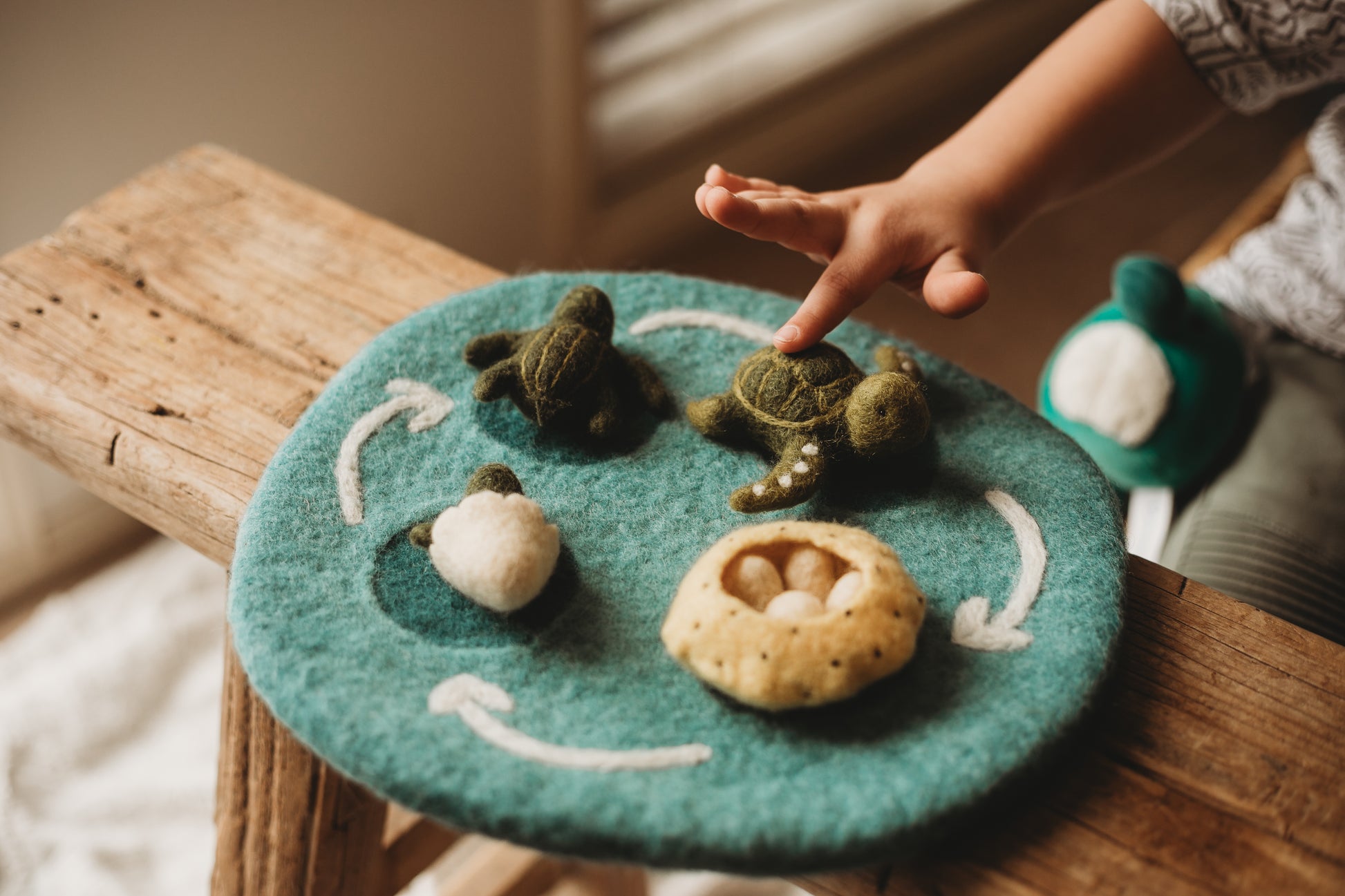 The green sea turtle is found in Australia's oceans and is one of the largest turtles in the world. This fascinating turtle life cycle toy has been needle-felted and great for small world play and silk play. This listing is for the felt lifecycle set only, the lifecycle tray playmat is sold separately.