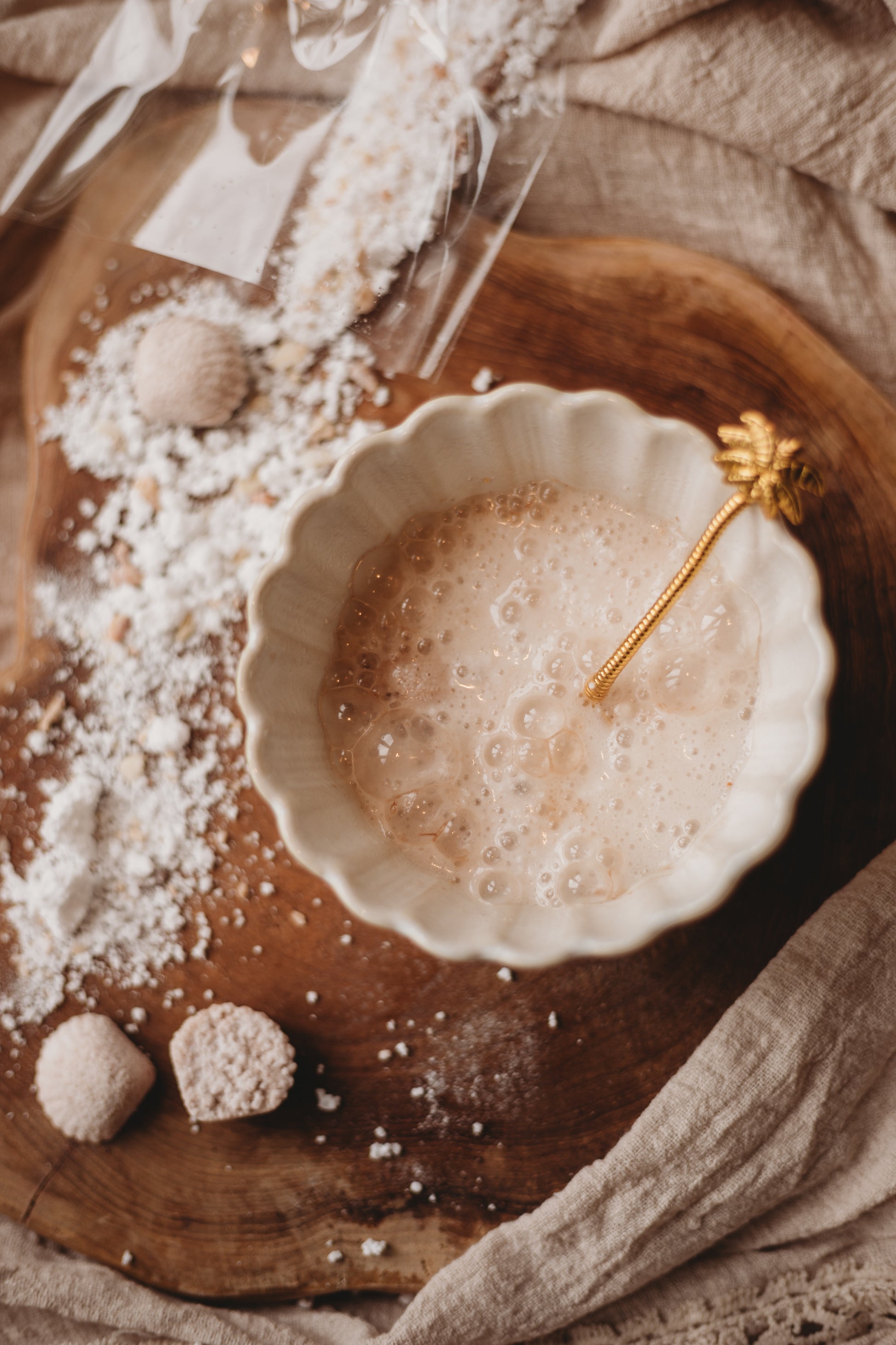 These fizz drips are a delightful blend of bicarb, citric acid, coconut oil, clay and essential oils and the ‘Chocolate’ is coloured with organic cacao.