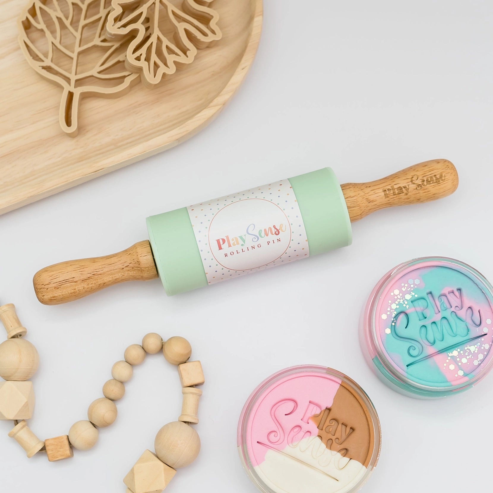 Roll out the fun with the Play Sense Rolling Pin, the ultimate playdough accessory! Made with sturdy wooden handles and a silicone centre, this roller is perfect for playtime indoors or outdoors. Available in pink or mint green, it's sure to add a playful touch to any activity.