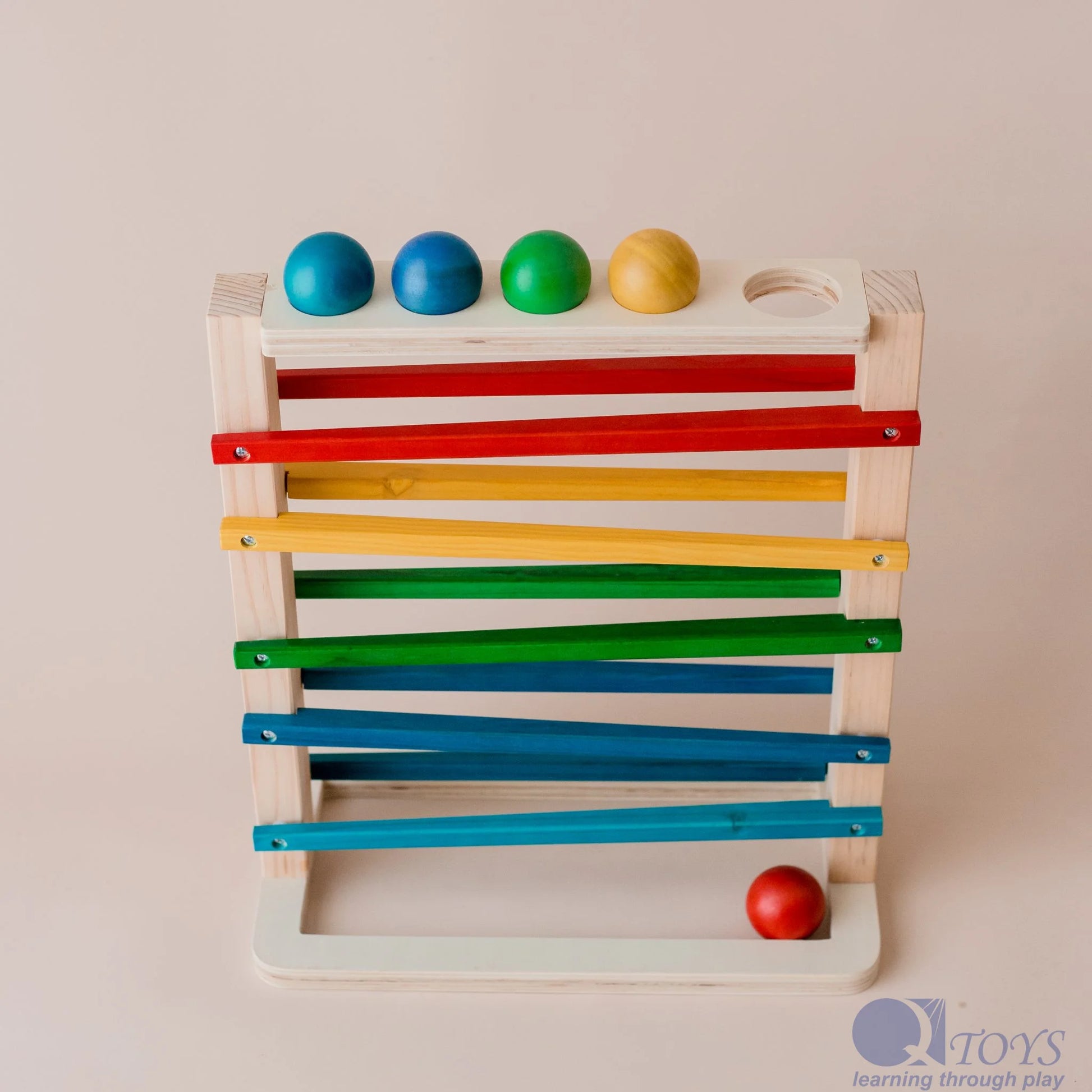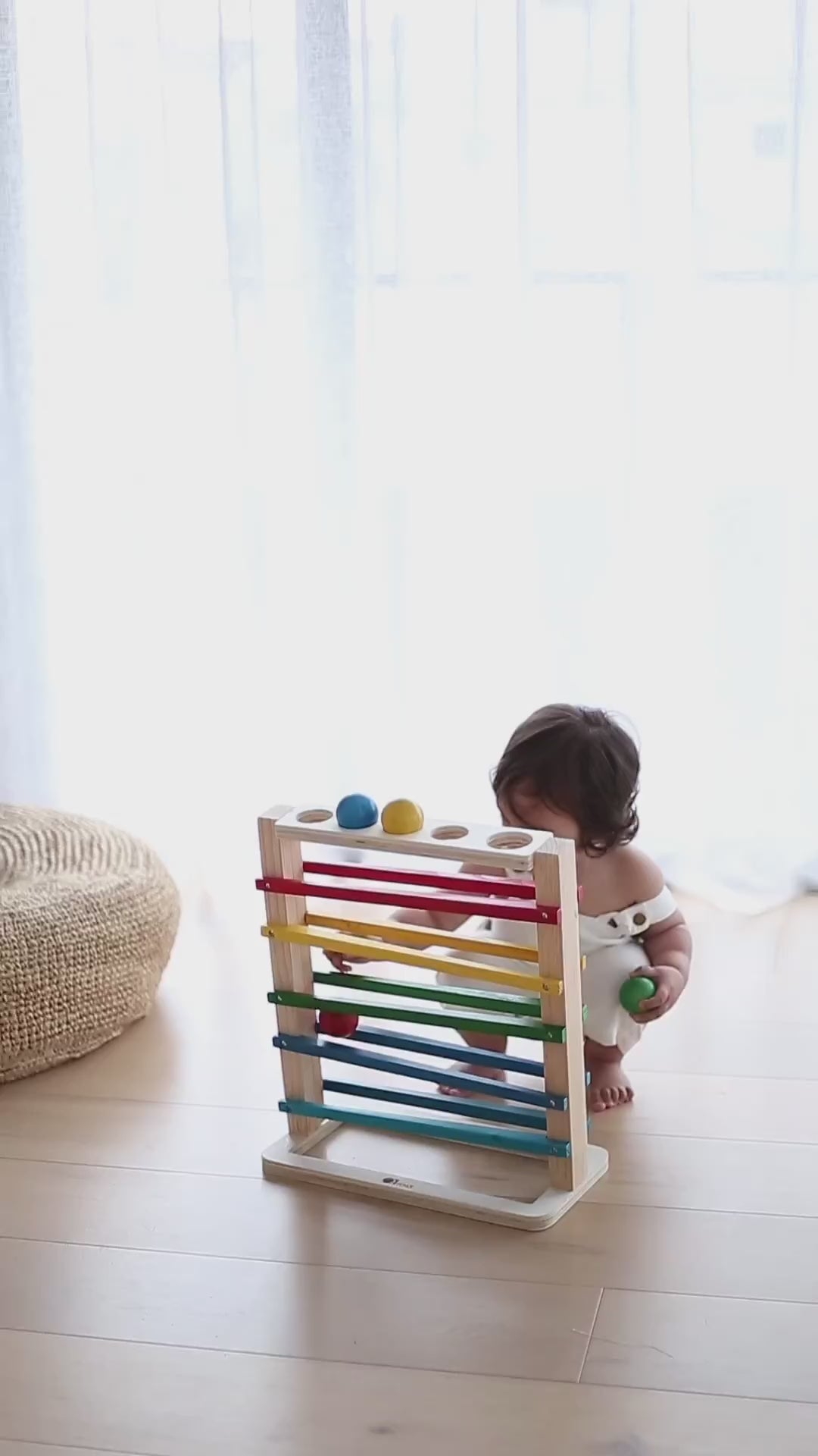 Colorful moving objects are always attractive to young children. This ‘track a ball rack’ is perfect for those curious minds. The track consists of different colors which promotes color recognition. It also includes 5 colored balls that match the colors of the track.