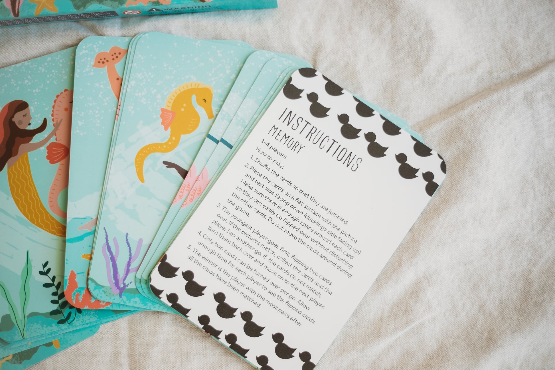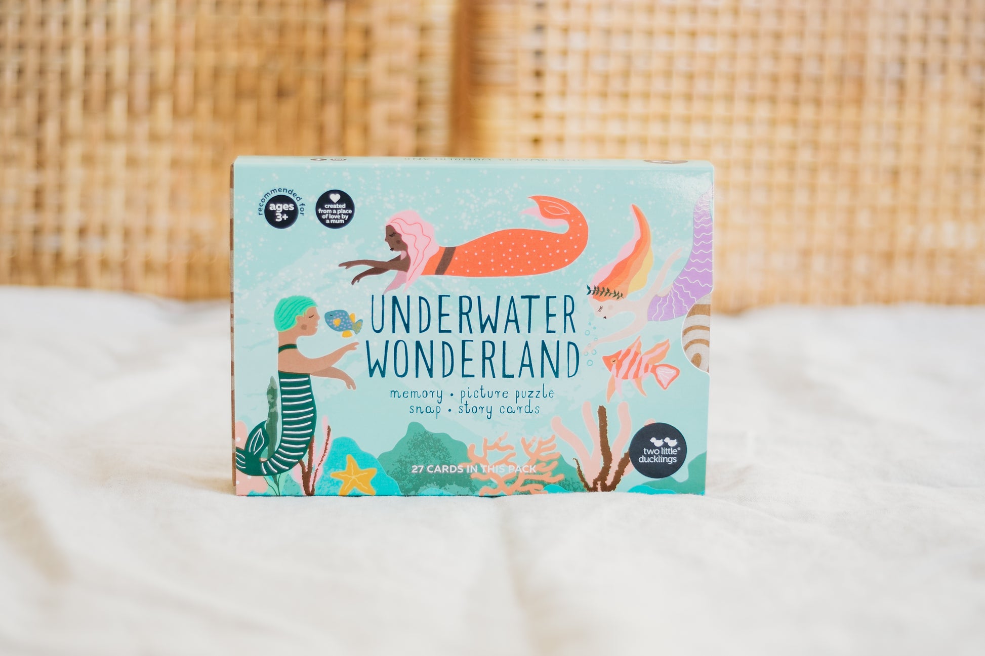 Test your memory, speed and visual skill playing against your friends and family with these underwater wonderland cards in a game of snap or memory. Try lining the cards up to make the picture puzzle or create your very own story. Each card is printed on environmentally friendly paper, laminated and features rounded corners for long life and durability. There are 26 cards with 13 different designs and 1 instruction card.